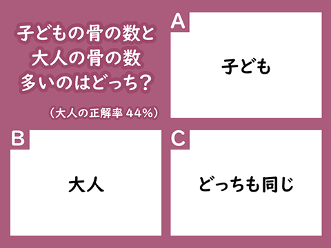 【前回のテーマ】大人の正解率44%:子どもの骨の数と、大人の骨の数、多いのはどっち?