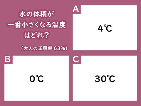 【前回のテーマ】大人の正解率63%:水の体積が一番小さくなる温度はどれ?