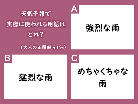 - 【前回のテーマ】大人の正解率91%:天気予報で実際に使われる用語はどれ?