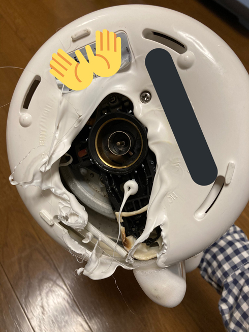 しかしその臭いは、魚を取り出しても消えなくて。不思議に思っているときに、ふと電気ケトルを持ち上げてみたら底面がドロドロに溶けていました。プラスチックがみょーんと伸びて、中の部品がバラバラと出てくるくらいに。