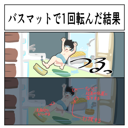 お風呂上がりのバスマットですべったら「一瞬で全身にダメージを負いました」