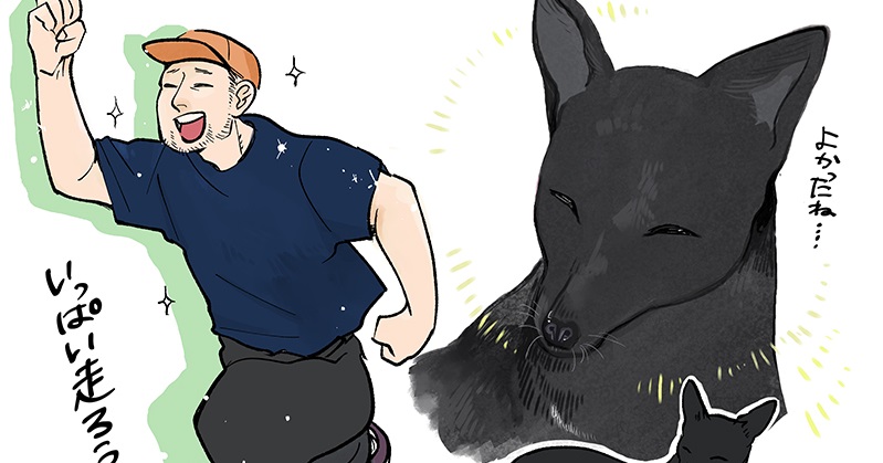 たびちゃんが「今日も飼い主が元気そうでよかった」と思っていたのか、はたまた「さぁいっぱい運動するのよ!」と思っていたのかは本人ならぬ、本犬にしかわかりません。しかしドッグがランせずにヒューマンがランしてしまったという、なんともじわじわくるエピソードになってしまったのでした。