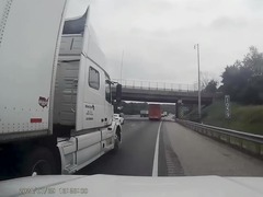 事件が起こったのは米国のとある高速道路。映像を記録していたクルマが走行していると、隣の車線にいたトラックが車線を変えようと動きます。慌てて車線を移ったことで大事には至りませんでしたが、再びトラックは車線を変えて、今度は幅寄せでプレッシャーをかけてきます。