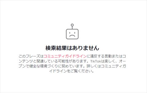 TikTokでは既にこのチャレンジを規制しているようで、「#milkcratechallenge」を検索しても検索結果は表示されず、「このフレーズはコミュニティガイドラインに違反する言動またはコンテンツと関連している可能性があります」とのメッセージが出るようになっています。