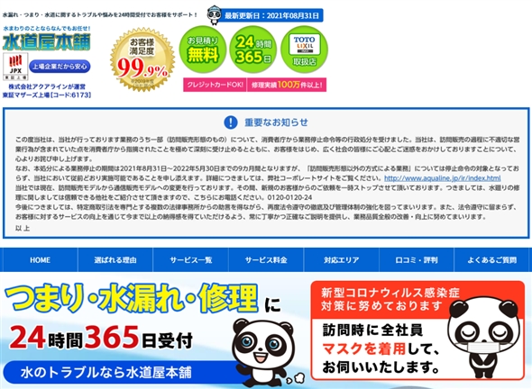 「うちには、クーリング・オフはありません」「これからお宅に行かせてもらおか」 水道修理の「水道屋本舗」に一部業務停止命令