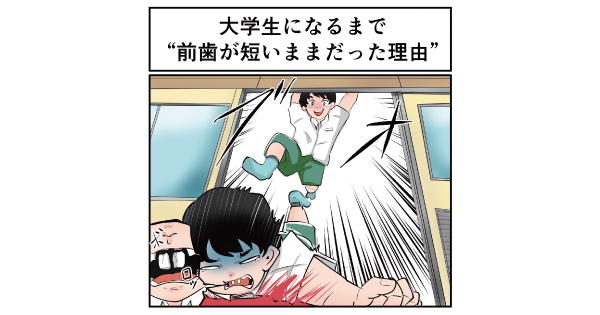 しかし、仮の歯は折れた前歯にフタを継ぎ足した程度の高さしかなくて。結局、大学生になるまで前歯が短い状態で過ごしていました。