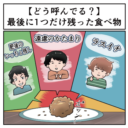 「大皿に盛られた食べ物で、最後の1つだけ残っているやつ」の呼び方いろいろ