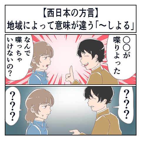 意味:この例だと、左の人は「しやがった」(軽い見下し)で理解している