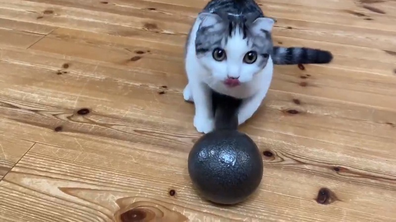 まったく持ち上がらないダンベルに驚く猫ちゃんが「一生懸命でかわいい」「終始驚いてるのほんまおもろいw」とTwitterで話題になっています。思っていたのと違うニャ!