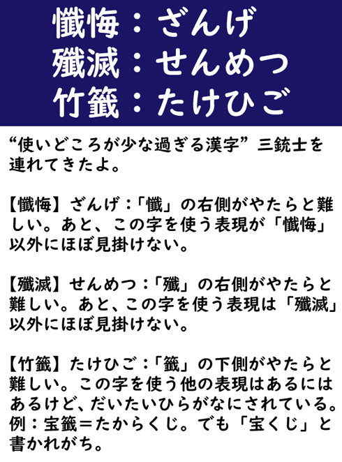 懺悔:ざんげ/殲滅:せんめつ/竹籤:たけひご