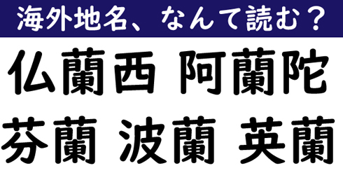 - 【前回の問題】「仏蘭西・阿蘭陀・芬蘭・波蘭・英蘭」の読み方は?(漢字の海外地名)