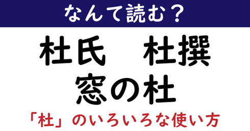 - 杜氏:とうじ/杜撰:ずさん/窓の杜:まどのもり