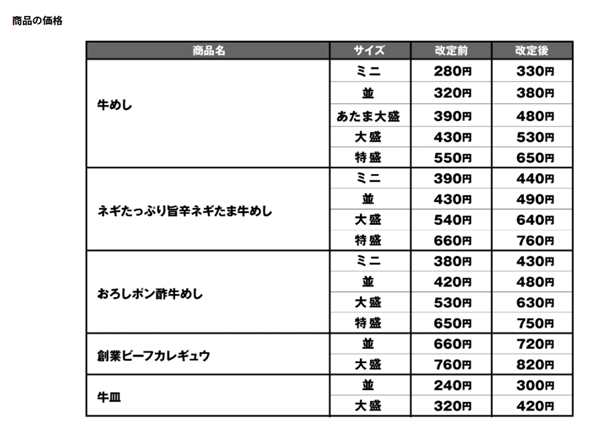 プレミアム牛めしは、これまで主に関東(663店舗)で販売されてきました。「牛めし(並)」が320円であるのに対し、「プレミアム牛めし(並)」は380円。メニューの統合に伴い、新しい「牛めし(並)」は380円に。旧「牛めし」提供エリア(290店舗)では事実上の値上げとなります。