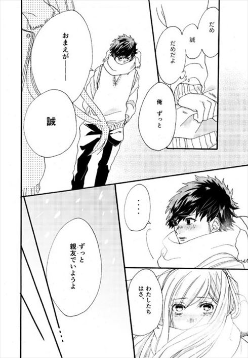 2人で飲んで酔った帰り、誠にキスしそうになってしまう理子。それをきっかけに高校時代に一度、友達をやめかけたことを思い出します。誠に告白されそうになって、「ずっと親友でいようよ」と遮ったのです。