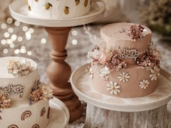 粘度で作られた食べられないけどずっと飾っておける「クレイケーキ」。「本人不在の誕生日会」にぴったりな注目アイテムです。実際のケーキにはなかなかない、くすみピンクのケーキベース、立体的なデイジーとドライフラワーをあしらったガーリーなデザインがすてきです。