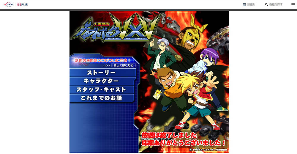 「人造昆虫カブトボーグ V×V」は、カブトボーグを使った戦い「ボーグバトル」に挑む主人公リュウセイのバトルや成長を描いた作品。2006年10月から2007年10月までBSジャパン・アニマックスにて放映されていました。