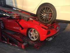 どうして…… 運搬中のコルベットにマセラティが落下 キャリアカー内で起きた珍事故の写真が話題に