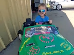 ビデオが撮影された場所はアメリカ。映像には、4歳のジャックくんが緑色のおもちゃの車に乗っているところが写っています。なんとこの車、彼専用に改造されたものなのだそうです。
