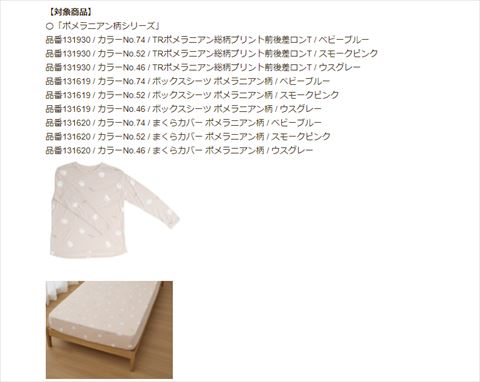 対象商品の購入者には返金対応を実施。希望者は連絡先を明記のうえ、対象商品を着払いでお客様相談室まで送付するよう呼びかけています。対象となるのは「ポメラニアン柄シリーズ」「ラッコ柄パジャマ」「ヨークシャテリア刺繍クルーソックス」「モチーフ線画刺繍クルーソックス」。