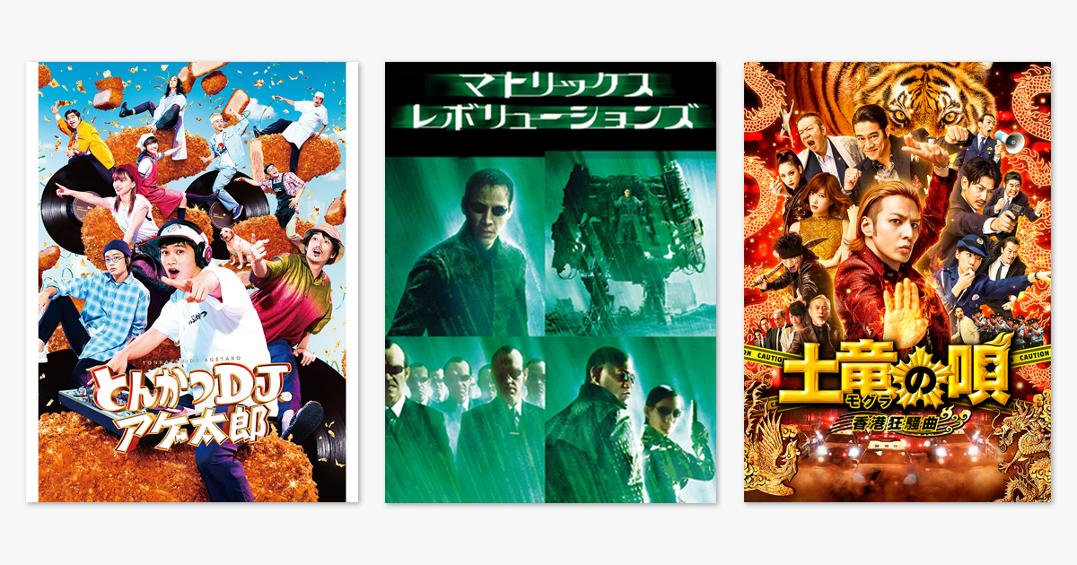 邦画では、中島みゆきさんの名曲を菅田将暉さん、小松菜奈さん主演で映画化した「糸」や、DJととんかつ店の3代目を目指して奮闘するギャグ漫画を実写化した「とんかつDJアゲ太郎」を見放題で独占配信。また実写版「土竜の唄」の完結編となる「土竜の唄 FINAL」の公開に先立ち、「土竜の唄 潜入捜査官REIJI」「土竜の唄 香港狂騒曲」も11月10日より独占配信します。