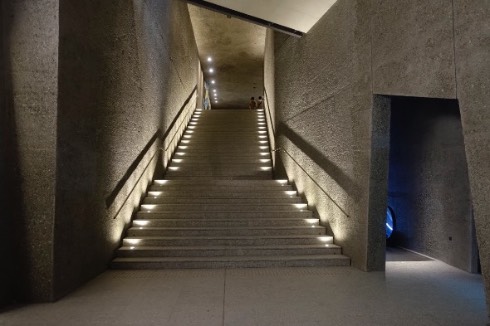 というわけで早速アトアへ。ポートミュージアムの2〜4階部分がアトアになっており、チケットカウンターおよび入場口は2階に位置しています。いきなりデカい階段が出現しますが、脇にはエスカレーターもあるのでご安心ください。