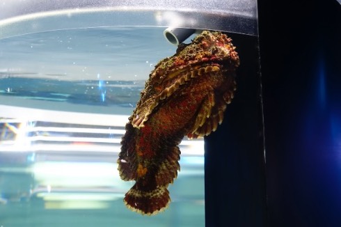 オニダルマオコゼの水槽。このオコゼめちゃくちゃでかいな
