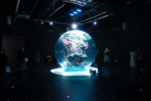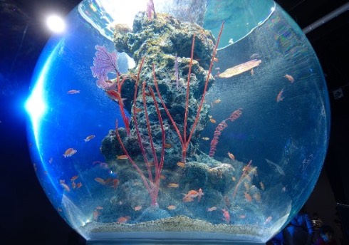 そしてその次が、ネットでも話題となった大型の球体水槽「AQUA TERRA」がある「PLANETS/奇跡の惑星」のエリア。ここではAQUA TERRAを中心に半球型の水槽が並んでおり、魚だけではないさまざまな海棲生物を見ることができます。