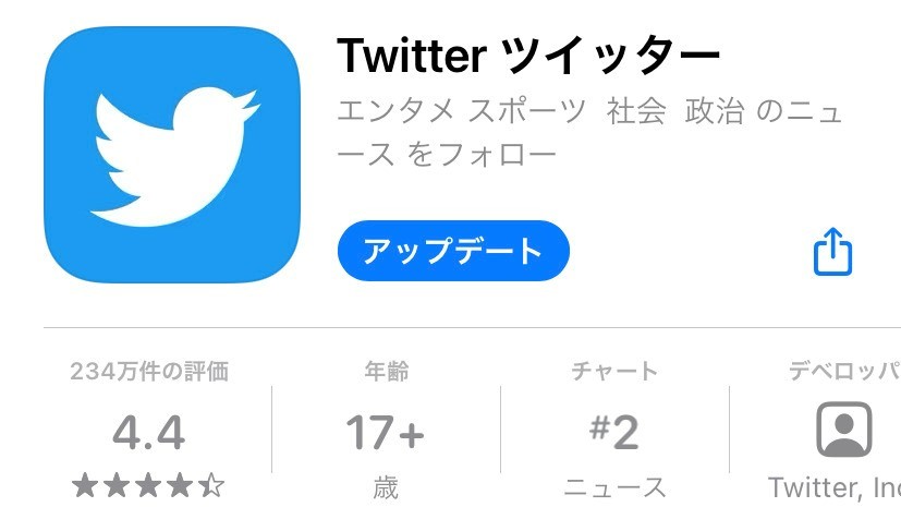 App Storeで開いたTwitterの画面(筆者のスマートフォン)