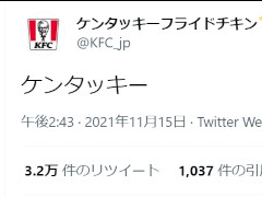 11月15日、Twitterで「ケンタッキー」と一言だけ呟くアカウントが大量発生する奇妙な光景が広がりました。この騒ぎに乗じてケンタッキーフライドチキン(KFC)の公式Twitterアカウントも「ケンタッキー」としれっと投稿。一体何が起こっているのでしょうか?