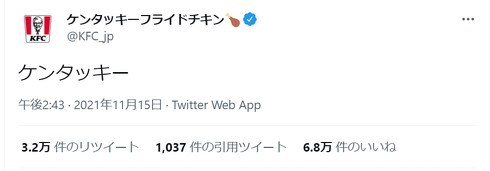 ――KFC公式アカウントもケンタッキーとだけツイートしていましたね。
