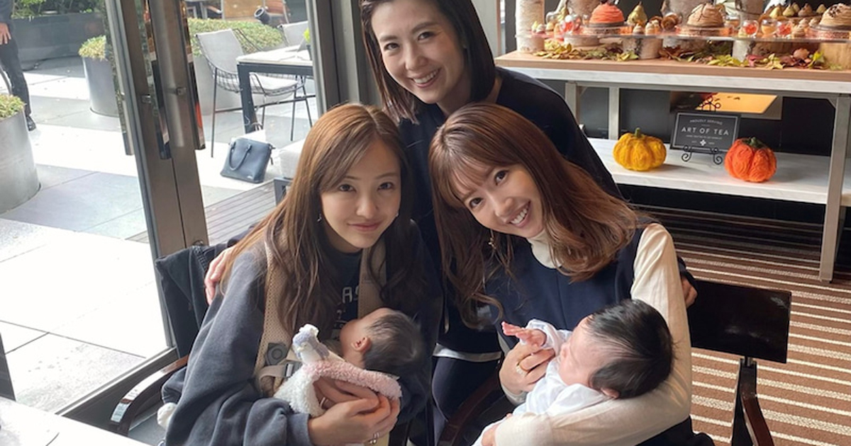 板野友美&舟山久美子、子どもを抱いた“新米ママ友”ショットが幸せいっぱい 「同い年でベビも月齢が近くて」
