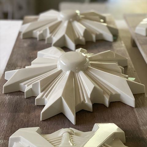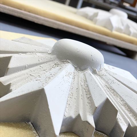 当時は紋章が木や金属で作られており、朽ちたり錆びたり変色したりしていました。創業者の廣部耕祐さんに、そのような状態だった紋章をセラミックスで作れないかという話があったことから試行錯誤を始めたといいます。