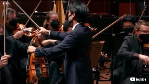 落ち着いた対処で演奏を続けるチェンさんに客席からは拍手が。動画には、チェンさんが演奏していないときに、自分のバイオリンを持っている奏者に予備の弦を渡している様子も映っています。なおステージ上で弦は修理され、チェンさんはその後自分のバイオリンで演奏できたとのこと