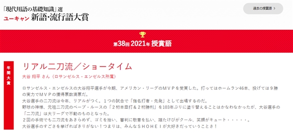 ユーキャンが2021年の新語・流行語大賞の結果を12月1日に発表しました。今年の年間大賞は「リアル二刀流/ショータイム」で、ロサンゼルス・エンゼルスの大谷翔平選手が受賞となりました。