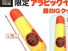 オレンジ色のキャップでおなじみの液状のり「アラビックヤマト」を、そのまま大きくしたようなかわいらしいデザイン。製造メーカーのヤマトが監修を行い、全長70センチと大きな抱き枕サイズのクッションが誕生しました。