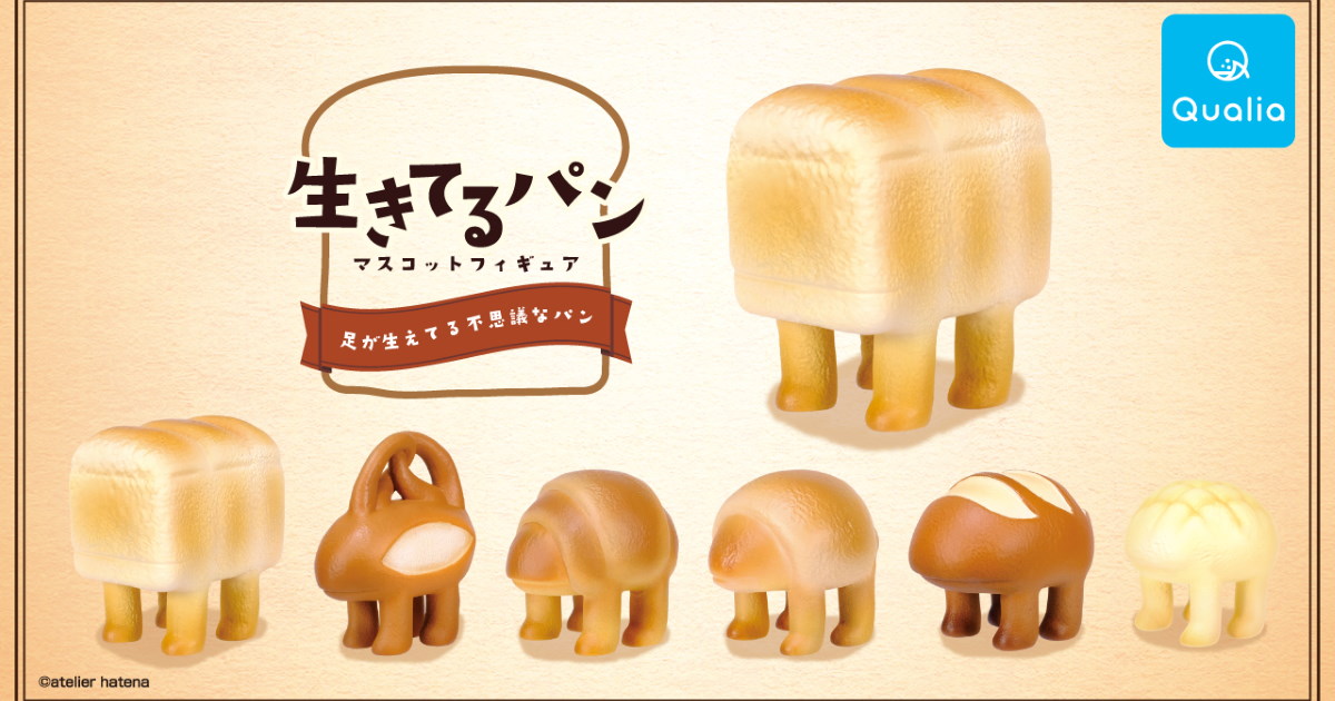 Qualiaがカプセルトイ、「生きてるパン マスコットフィギュア」を順次全国で販売します。食卓に上がる前の4足歩行する姿を忠実に再現しています……ってコラコラ。