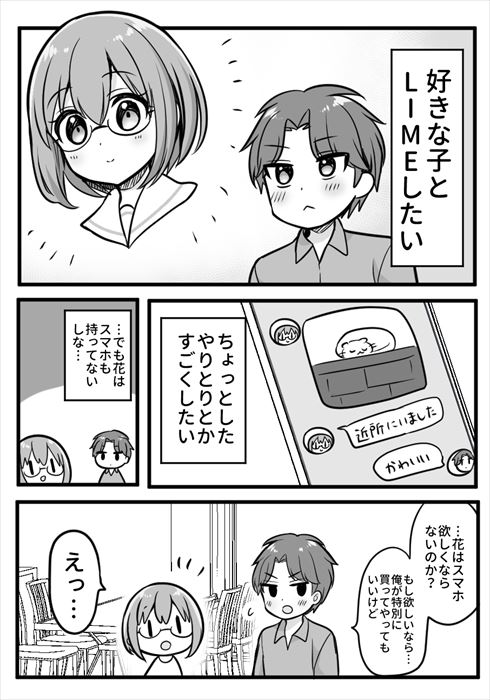 好きな子とスマホでいつでもつながって、ちょっとした会話がしたい。そんな気持ちはわかるけど、好きな子からの「直接話したい」という言葉は破壊力抜群。花ちゃんのかわいさにときめく読者が続出しています。