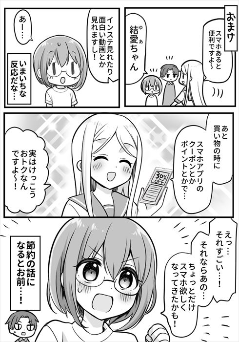 スマホを持っていない女の子と、スマホを持ってほしい男の子の漫画が尊くてニヤニヤしてしまいます。作者は漫画家の大原ロロン(@roron34)さん。