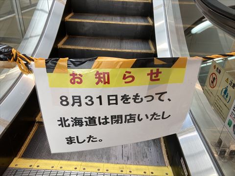 Twitterユーザーのきりしま(@Unlock_Frozen_)さんが「都道府県単位の閉店」とコメントを添えて投稿したのは、エスカレーターに掲示された「8月31日をもって北海道は閉店いたしました」という掲示の写真。北海道閉店ってどういうことなの……? おそらくは「北海道店」の「店」が抜けてしまったのでしょうが、1文字欠けただけでダイナミックなことに。