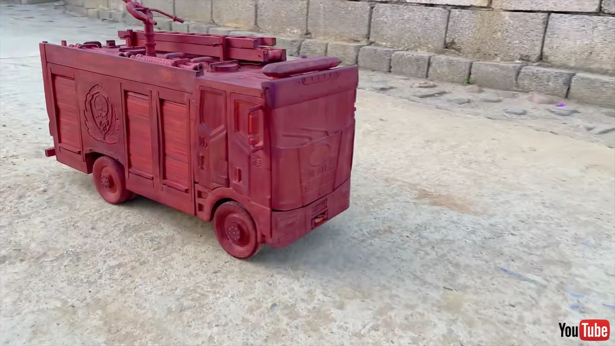 釘を一切使わずに木工の消防車を作る様子を収めた動画が注目を集めています。