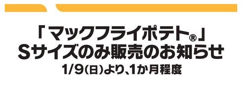 1月9日より、マクドナルドがフライドポテト(マックフライポテト)の取り扱いを縮小し、Sサイズのみ販売に。コロナ禍の影響で物流が滞り、原料である北米産じゃがいもの在庫が不足したためです。