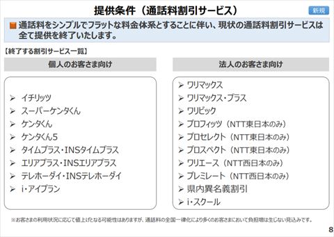 通話料金体系の変更に伴い、テレホなどの割引は終了に。