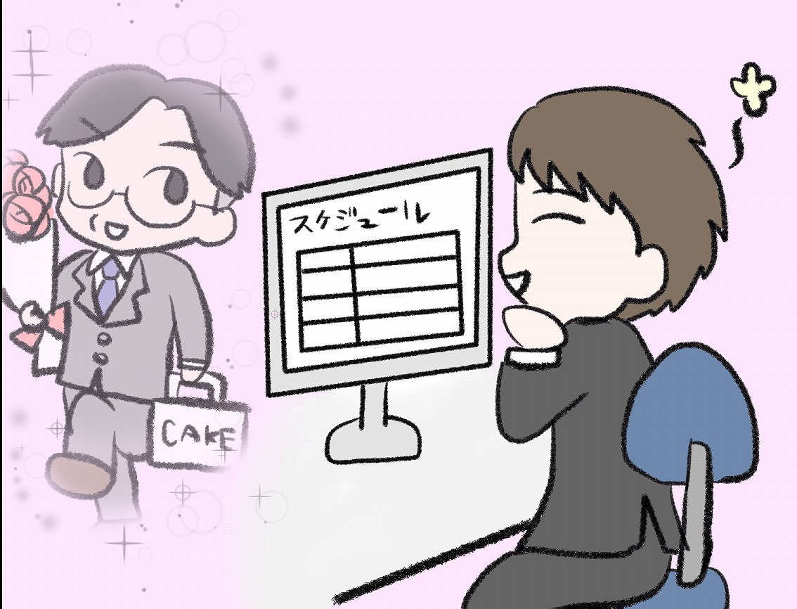 【お仕事楽しい】スケジュール表の公開・非公開を逆に設定 妻のため花屋に行くのがバレてしまった部長