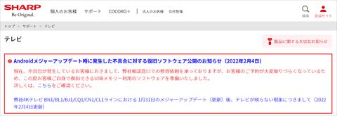 シャープは、「AQUOS」テレビで再起動を繰り返す不具合が発生していた問題について、利用者が自身で復旧できるソフトを公開しました。