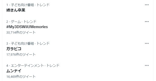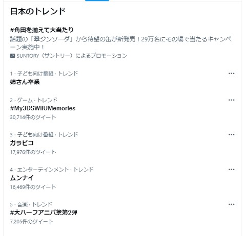 Twitterのトレンド1位にあつこおねえさんの卒業、3位にガラピコ