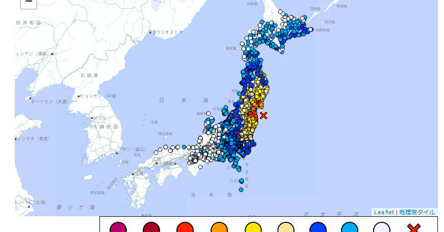 各地の震度は、宮城県北部、宮城県南部、福島県中通り、福島県浜通りで震度6強、宮城県中部で震度6弱を観測。その他、岩手県と山形県で震度5強など、東日本の広い範囲で震度4以上が観測されています。この影響で、東京電力管内の約208万軒で停電が発生しています(関連記事)。