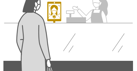 現金やクレジットカードを出したり、スマホを出してアプリを開いたりすることもなく、レジのカメラで認証されれば「顔パス」で決済が完了します。マスクを付けたままでも認証できるとします。
