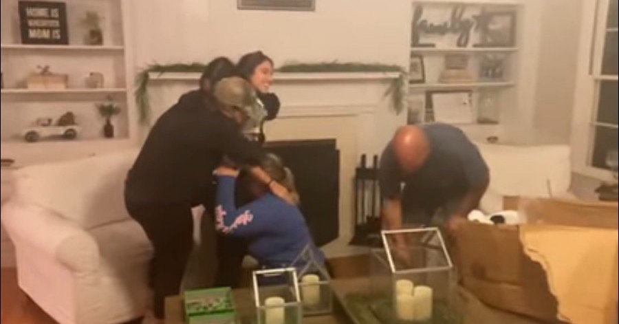 動画が撮影されたのは米フロリダ州。毎年バレンタインデーに夫や息子たちからプレゼントをもらっている女性は、夕食を食べた後、みんなでプレゼントを開けようとします。プレゼントの箱はやや大きめのダンボール箱。いったい何が入っているのでしょうか。