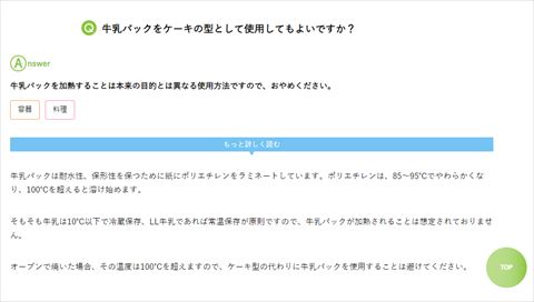 「牛乳パックをケーキの型として使用してもよいですか?」に対する日本乳業協会の説明