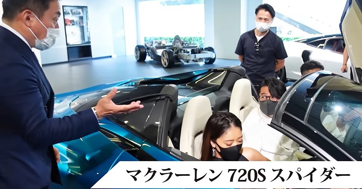 「マクラーレン 720S スパイダー」に乗り込んだ吉村さん(画像はYouTubeから)